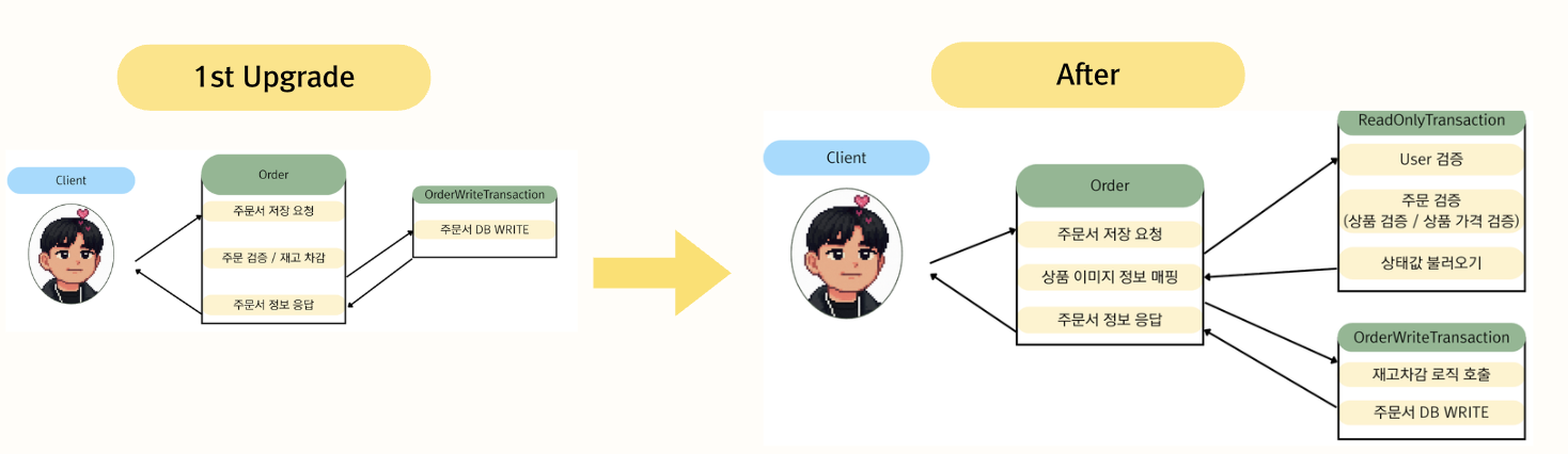 즉, 기존 Order 트랜잭션 안에는 Read와 Write가 뒤섞여 있었던 것이다.