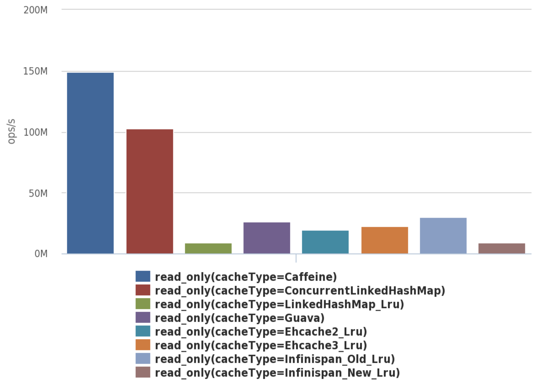 위 자료들에 따르면, Caffeine 캐시는 읽기 위주의 워크로드에서 매우 높은 처리량을 보여준다.