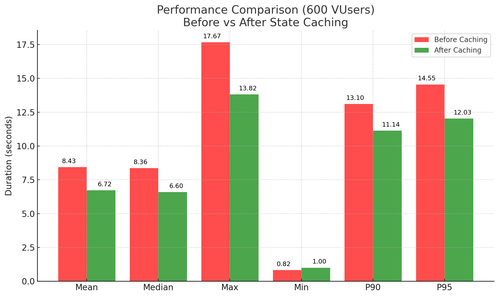 상태값 적용 전/후를 비교해보면 P90/P95 구간에서 약 2~3초 정도 단축되는 개선 효과를 확인할 수 있었다.