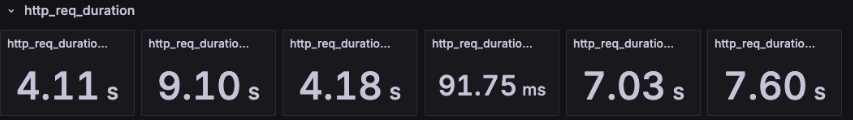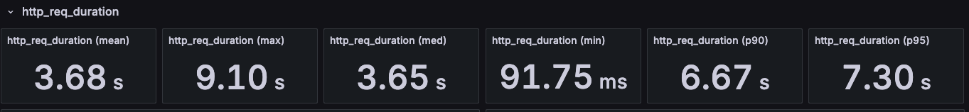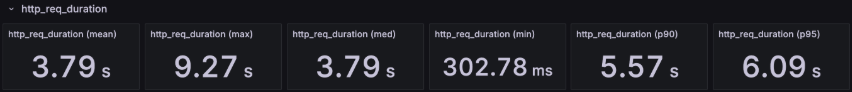 이전에는 최저 응답 시간조차 300ms 수준에 머물렀지만 이번 테스트에서는 min 응답 시간이 크게 낮아졌다.