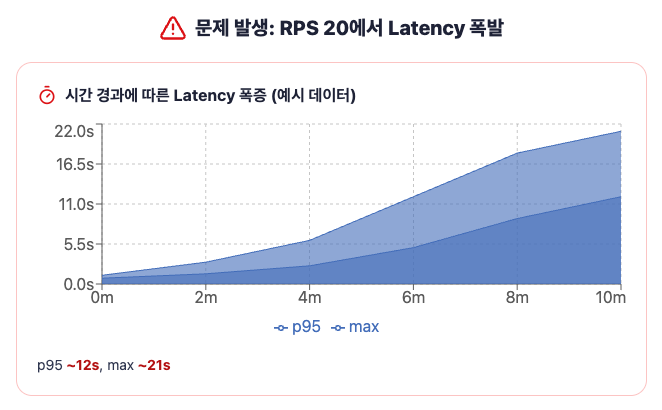시간 경과에 따른 Latency 폭증 (예시 데이터)