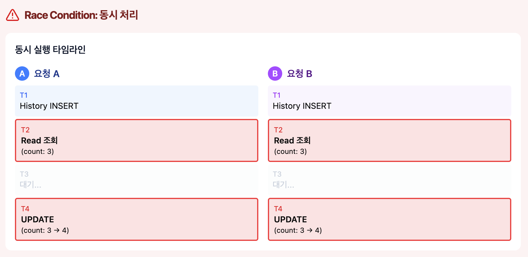 Read row가 중복되어 생성되거나 count나 lastHistoryId가 꼬일 수 있다.