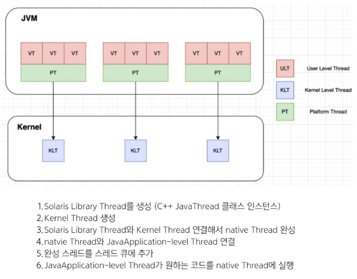 결론적으로는 JVM 자체적으로 Virtual Thread를 스케줄링하고 컨텍스트 스위칭 비용이 줄어 효과적으로 운영 가능하도록 만든 것입니다.