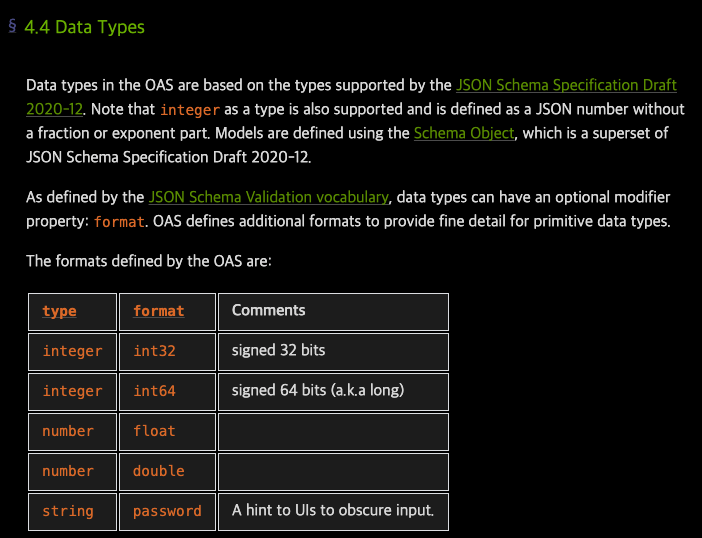 하지만, OAS 3.1부터는 다릅니다. OAS 3.1은 JSON Schema 2020-12를 따릅니다.
