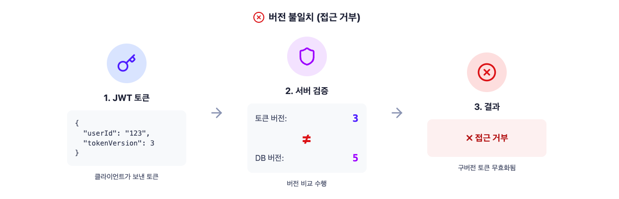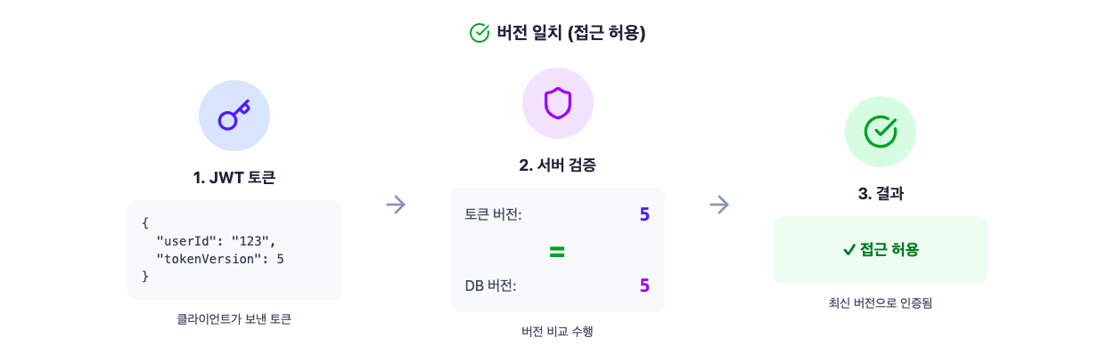 서버는 매 요청마다 토큰에 포함된 버전을 DB 내부 버전과 비교한다.