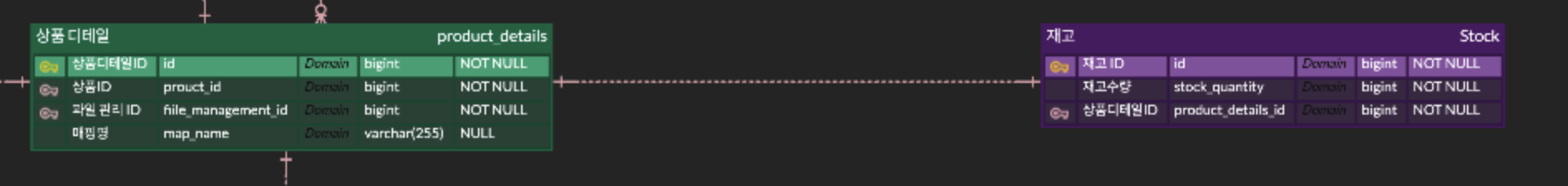 MVP 단계에서는 재고 정보는 product_detail 테이블에 포함된 형태로 관리되고 있었다.